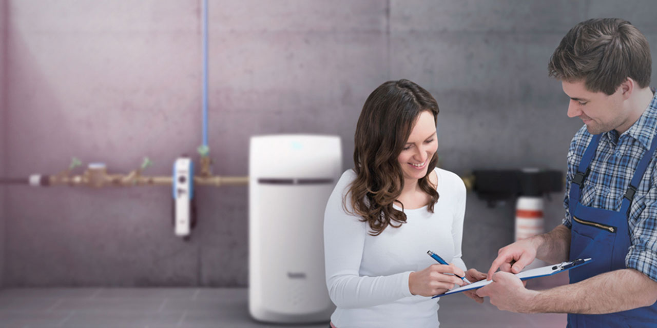 Det bedste sted at installere blødgøringsanlægget er lige efter hovedvandmåleren, hvor vandet kommer ind i ejendommen. Installationen kræver strøm og et afløb i nærheden. Det skal tilsluttes af en autoriseret VVS-installatør. Når vandet løber gennem anlægget, fjernes kalken, og der leveres blødt BWT vand til hele ejendommen.