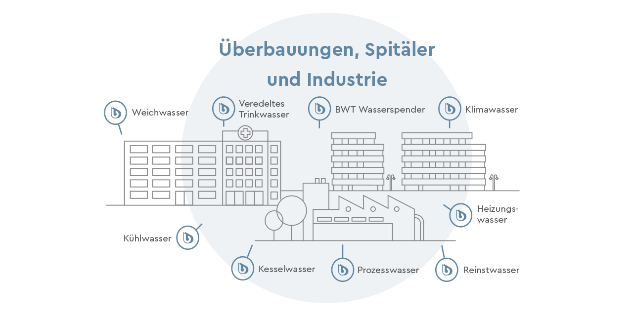 BWT ist Experte im Bereich Wasseraufbereitung. Wir forschen, entwickeln und produzieren verschiedene Anlagen - für Gewerbe und Industrie, Pharma und Biotech, Hotels und Spitäler oder in Gemeinden und Städten. Wir arbeiten kontinuierlich an der Entwicklung von Verfahren und Produkten, die für die verschiedensten Anwendungsbereiche die jeweils beste Wasserqualität erzielen. Immer mit dem Anspruch, den Verbrauch von Rohstoffen und Energie zu reduzieren und somit die CO2-Emissionen zu minimieren.