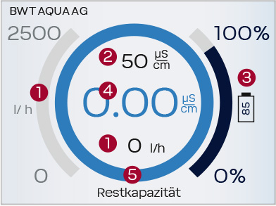 Das dazugehörige moderne AQA therm smart Steuergerät überwacht den Durchfluss und die Leitfähigkeit des Ausgangswassers und ermöglicht die Kontrolle der Füllwasserqualität. Wenn den Grenzwert erreicht wird, erscheint ein optischer und akustischer Alarm.