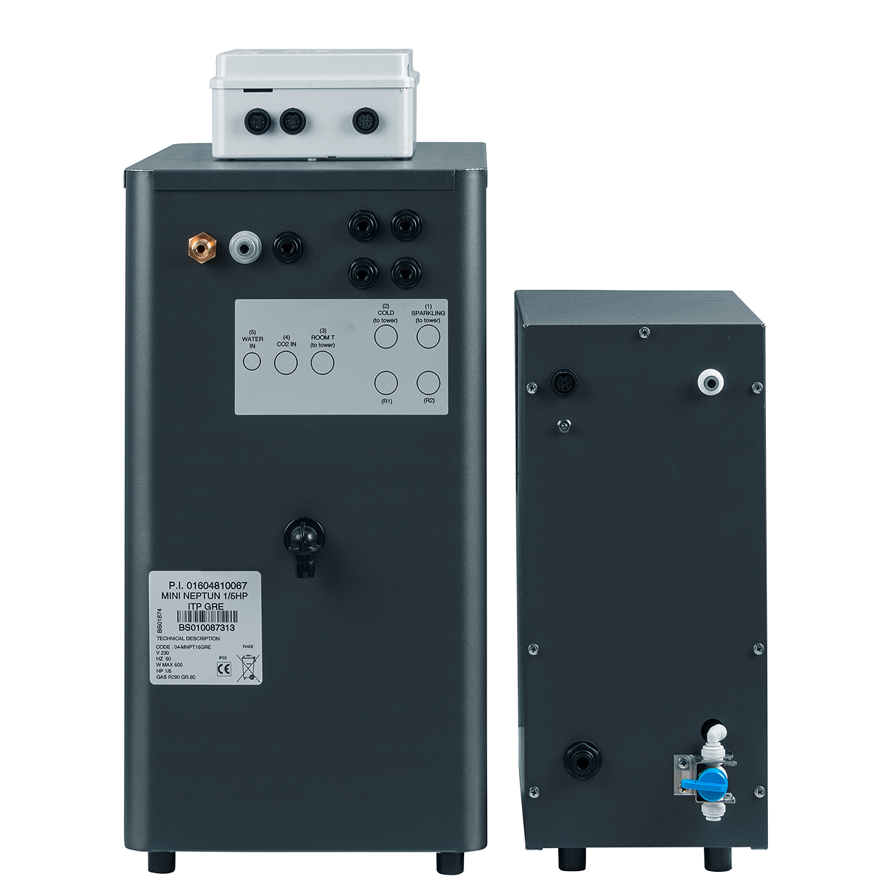 Aufbau: Der Wasserspender besteht aus: einem Edelstahltower als Ausgabeeinheit, einer Kühleinheit für gekühltes stilles und gekühltes Sprudelwasser und einem Heizmodul für heisses Wasser (modellabhängig). Die Wassertemperatur ist werkseitig auf 8°C eingestellt und sollte nicht verändert werden. Das Sprudelwasser kann 1-2°C tiefere Temperaturen aufweisen. Die örtlichen Vorschriften für Strom-, Wasseranschluss und Hygiene müssen eingehalten werden.