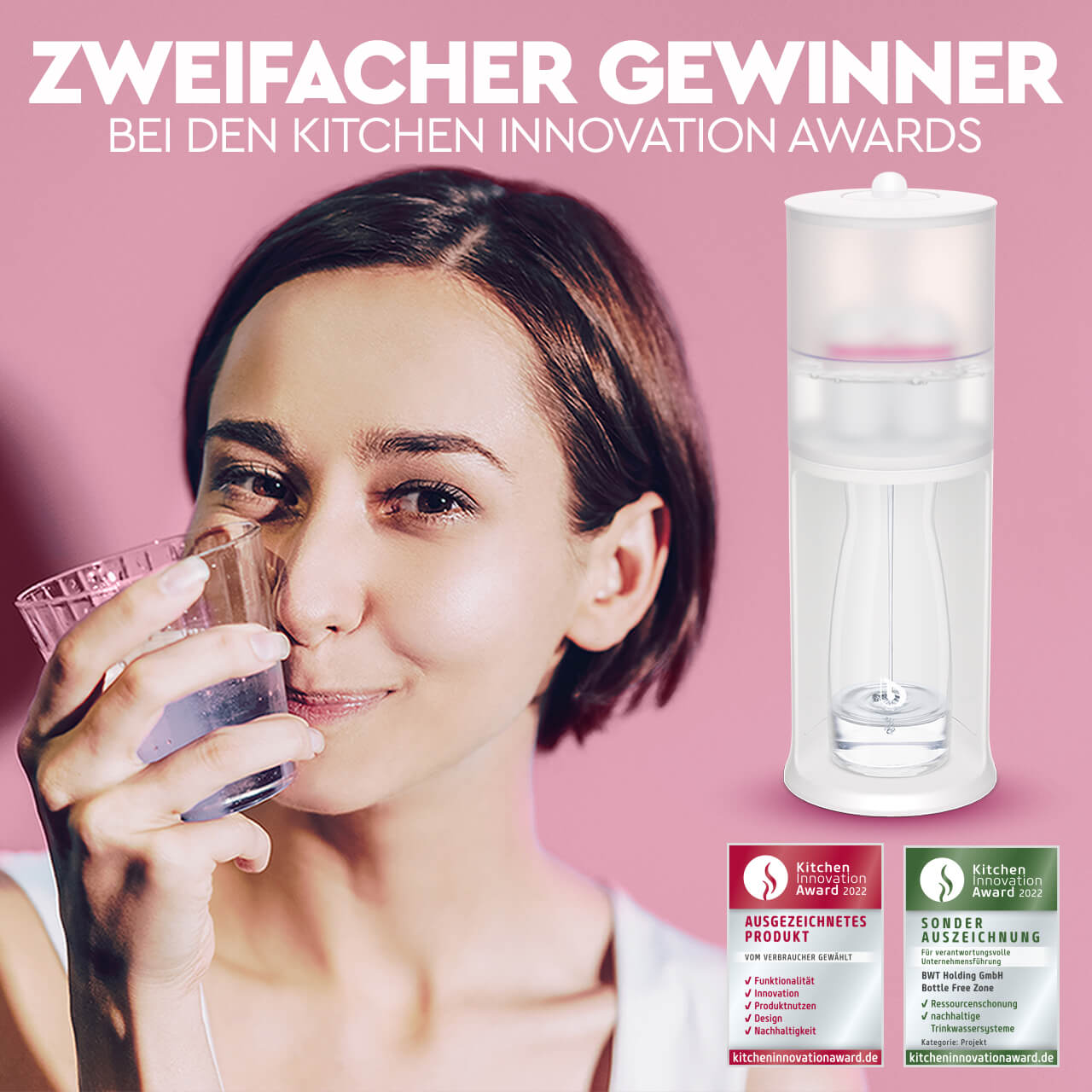 In gleich zwei Kategorien konnte BWT die Jury der Kitchen Innovation Awards, bestehend aus Experten und Konsumenten, für sich gewinnen: die Idee der Bottle Free Zone wurde sowohl für Funktionalität, Innovation, Produktnutzen, Design und Nachhaltigkeit sowie auch mit einer Sonderauszeichnung für nachhaltige Unternehmensführung in den Kategorien Ressourcenschonung und nachhaltige Trinkwassersysteme ausgezeichnet.