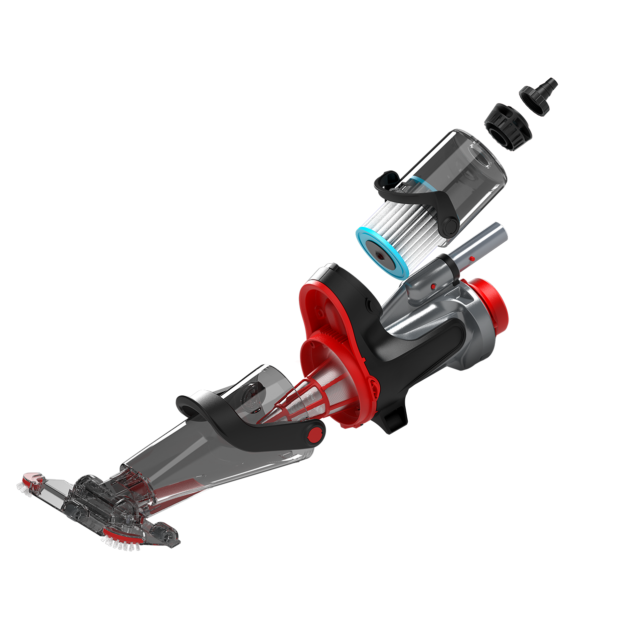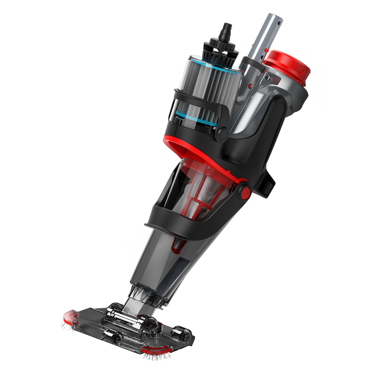 The Neptune EV60 features a powerful 11.1 V motor and a dual filtration system, combining a stainless steel standard filter (250 microns) with an extra-fine cartridge filter (50 microns) to capture both large debris and fine particles.