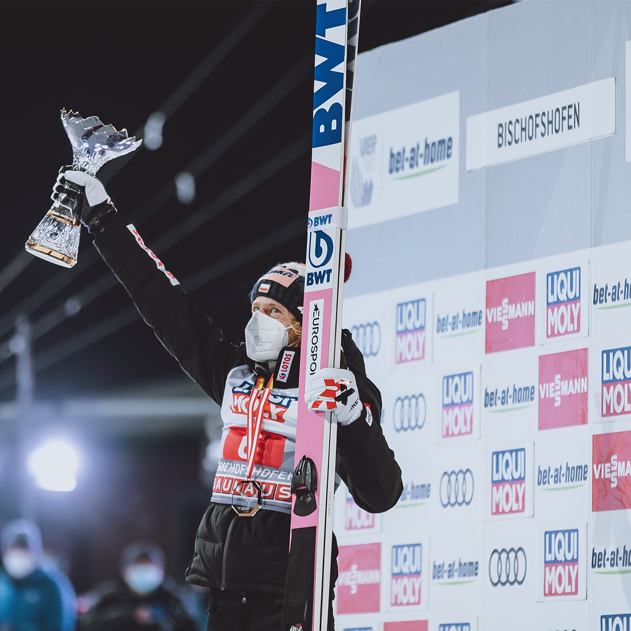 The four-hills tournament started with a moment of shock for the Polish team. Due to a positive COIVD-19 test of a team member, all Polish jumpers were excluded from participating in Oberstdorf. However, this early decision was withdrawn on the competition day, as the entire Polish team was tested negative. Thus, our BWT jumpers Dawid Kubacki (defending champion), Piotr Zyla and Maciej Kot were able to take part in the first competition.