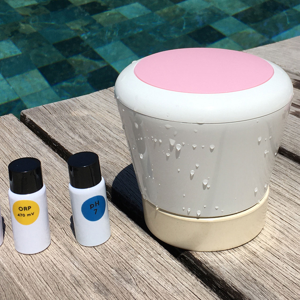 The Pearl Water Manager monitor the quality of your water and the safety of your bathers 24 hours a day. This smart pool buoy measures the pH value, temperature, conductivity, and redox potential permanently and in real time in the classic pool as well as in the whirlpool.