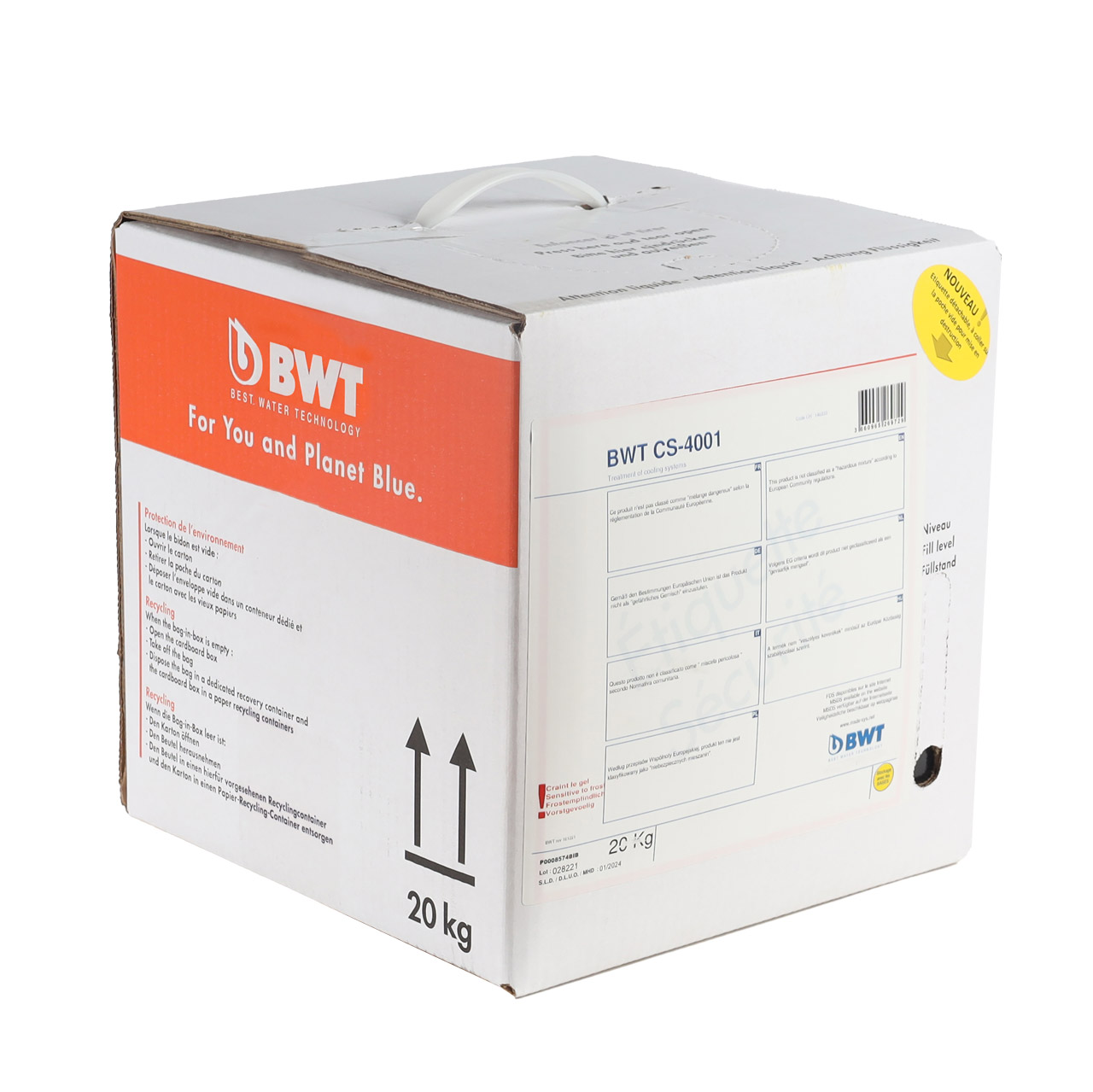 Stockage : Bien fermé, BWT CS-4001 peut être stocké pendant minimum 6 mois, dans un endroit frais, protégé du gel et à l'abri de la lumière.
