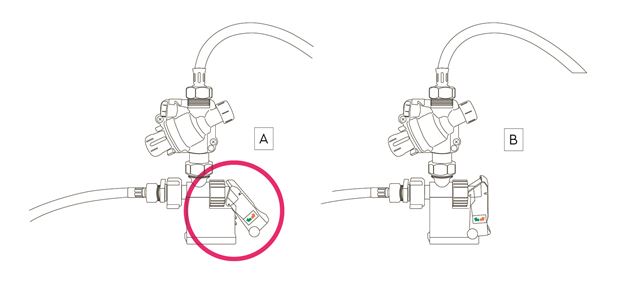 Eau pas assez pétillante : L’indicateur B donne des informations sur l’intensité de la gazéification. Si l’aiguille est en dessous de 3 bars, il faut augmenter la pression. Dans les deux cas, veuillez contacter le service clientèle de BWT.