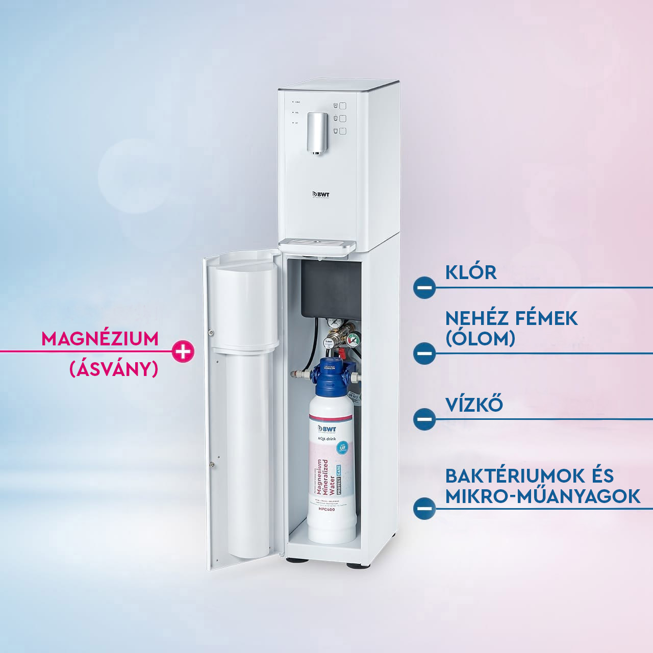 A BWT Hygiene rendszerrel vízautomatáinkat 3-szoros higiéniai védelemmel láttuk el, szabadalmaztatott BWT-magnézium technológiánk pedig gondoskodik arról, hogy csapvizéből ízletes szűrt vizet állíthasson elő.