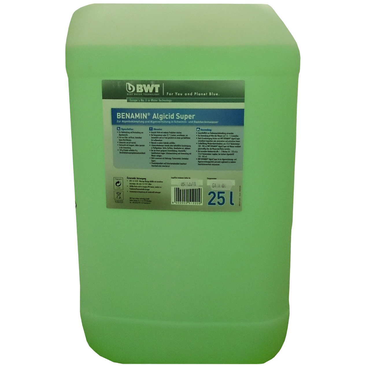 Benamin ALGICID SUPER jest płynnym prepa­ratem do zwal­czania glonów i bakterii. Zawiera związki amonowe (czwar­to­rzę­dowe) oraz substancje zapa­chowe, nie zawiera chloru. Własności: niebieska ciecz. Benamin ALGICID SUPER jest silnie dzia­ła­jącym środ­kiem nisz­czącym glony. Preparat ten nie może jednak całko­wicie zastę­pować chloru jako środka dezyn­fe­ku­ją­cego wodę base­nową. Dlatego oprócz Benamin ALGICID SUPER należy raz w tygo­dniu prze­pro­wa­dzać chlo­ro­wanie dawką uderze­niową (przy użyciu tabletek lub granu­latu: Benamin QUICK TABLETTEN lub GRANULAT).