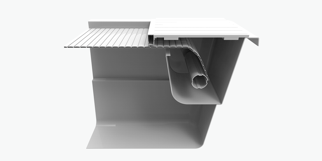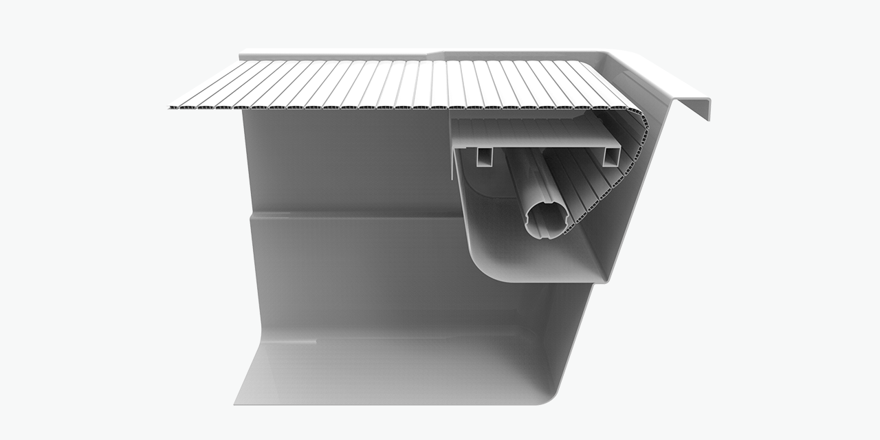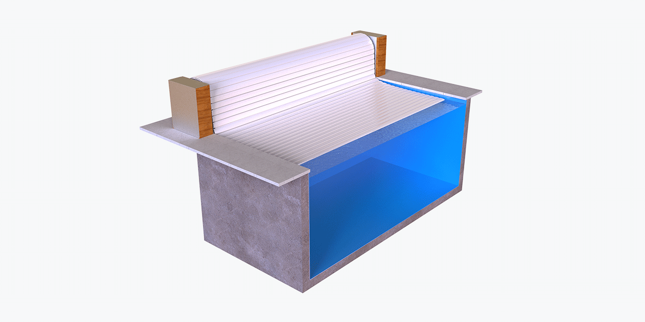 Denna typ av poolskydd är ett säkert lamellskydd där själva rullen placeras ovanför vattnet. Du får därför samma säkerhet som med ett lamellskydd under vattnet. Poolskyddet är enkelt att installera, både på nya pooler och äldre pooler. Omslaget finns i olika färger.